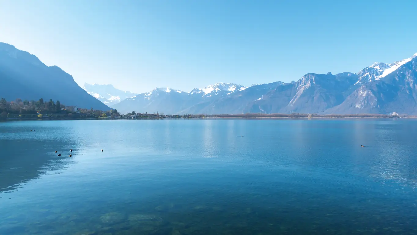 In contrast, a milky blue tint may be more visible closer to the Rhône delta, which is fed by surrounding glaciers. Yet another more apparent influence is one’s viewing point over the lake.